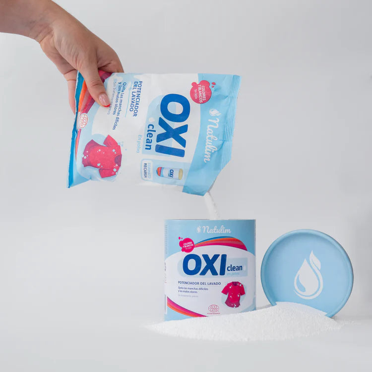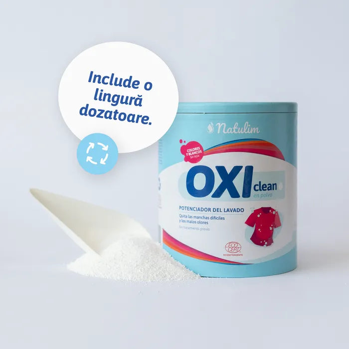 Combinarea Oxi cu detergent Natulim sau cu un detergent tradițional îmbunătățește semnificativ rezultatul spălării, fără a lăsa reziduuri sau substanțe toxice.